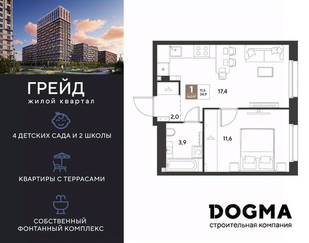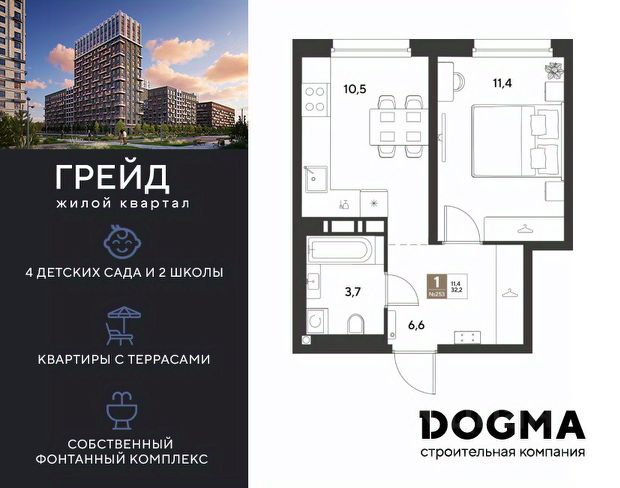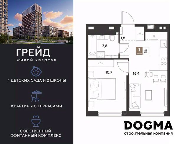 В продаже 1-комнатная квартира от застройщика! ЖК GRADE г. Краснодар, Литер 13 Срок сдачи: 2 кв. 2028, общей площадью 35.7 кв.м., на 7 этаже. GRADE от DOGMA: квартал бизнес-класса. Никогда неоклассика не была представлена в краснодарской архитектуре с таким характером. Пока не появился GRADE, неоклассический квартал, объединяющий строгие формы и величие с прогрессивными технологиями и лаконичностью современного дизайна. Жить в GRADE — значит чувствовать статус, наслаждаться свободой и управлять своим временем. Квартал с переменной этажностью 9, 16 и 18 этажей предлагает полную инфраструктуру для жизни: 4 детских сада, 2 школы, поликлиника и ФОК расположены в шаговой доступности. Ваши привилегии в GRADE: Архитектура в стиле неоклассицизм. Гранд-лобби с панорамными окнами, мягкой мебелью и выдержанной палитрой. Закрытый клуб с консьерж-сервисом: Детский клуб; Кинотеатр на 20 мест; Фитнес-рум. Благоустройство: Парк с фонтаном и амфитеатром, эко-площадки, зоны отдыха, спортивные площадки. Коммерция на первых этажах с площадками для бизнеса. Технологии "Умный дом": Управление через смартфон; Бесключевой доступ по BLE-технологии; Круглосуточное видеонаблюдение; Бесшовный Wi-Fi по всей территории; Интеллектуальные счетчики. Многоуровневый подземный паркинг с видеонаблюдением, прямым доступом на скоростном лифте и электрозарядками. Дополнительные удобства: Колясочные, велобоксы, кладовые помещения, скоростные лифты. Приобрести квартиру можно одним из способов: Семейная ипотека. Рассрочка. Оплата наличными. Дистанционная покупка. Позвоните сейчас и узнайте больше о возможностях приобретения квартиры бизнес-класса в ЖК GRADE!