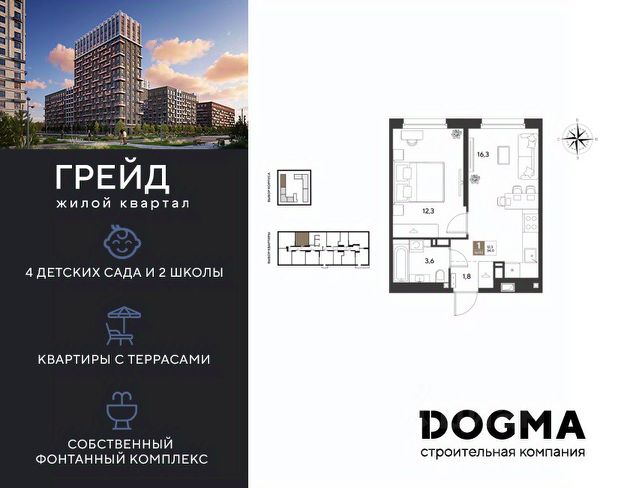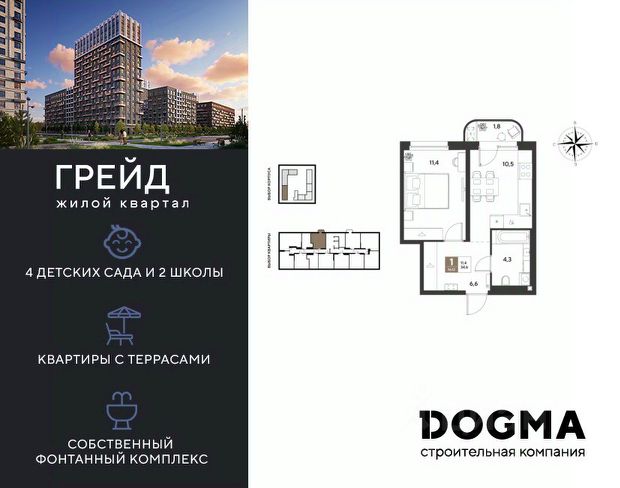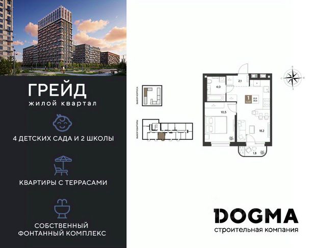 В продаже 1-к квартира от застройщика! ЖК ГРЕЙД г. Краснодар, Литер 14. Срок сдачи: 3 кв. 2028, общей площадью 38.2 кв.м., на 4 этаже. ГРЕЙД от DOGMA: квартал бизнес-класса. Никогда неоклассика не была представлена в краснодарской архитектуре с таким характером. Пока не появился ГРЕЙД, неоклассический квартал, объединяющий строгие формы и величие с прогрессивными технологиями и лаконичностью современного дизайна. Жить в ГРЕЙД — значит чувствовать статус, наслаждаться свободой и управлять своим временем. Квартал с переменной этажностью 9, 16 и 18 этажей предлагает полную инфраструктуру для жизни: 4 детских сада, 2 школы, поликлиника и ФОК расположены в шаговой доступности. Ваши привилегии в ГРЕЙД: - Архитектура в стиле неоклассицизм. - Гранд-лобби с панорамными окнами, мягкой мебелью и выдержанной палитрой. - Закрытый клуб с консьерж-сервисом: - Детский клуб; - Кинотеатр на 20 мест; - Фитнес-рум. - Благоустройство: Парк с фонтаном и амфитеатром, эко-площадки, зоны отдыха, спортивные площадки. - Коммерция на первых этажах с площадками для бизнеса. - Технологии "Умный дом": - Управление через смартфон; - Бесключевой доступ; - Круглосуточное видеонаблюдение; - Интеллектуальные счетчики. - Многоуровневый подземный паркинг с видеонаблюдением, прямым доступом на скоростном лифте и электрозарядками. - Дополнительные удобства: колясочные, велобоксы, кладовые помещения, скоростные лифты. Приобрести квартиру можно одним из способов: - Семейная ипотека. - Рассрочка. - Оплата наличными. - Дистанционная покупка. Позвоните сейчас и узнайте больше о возможностях приобретения квартиры бизнес-класса в ЖК ГРЕЙД!