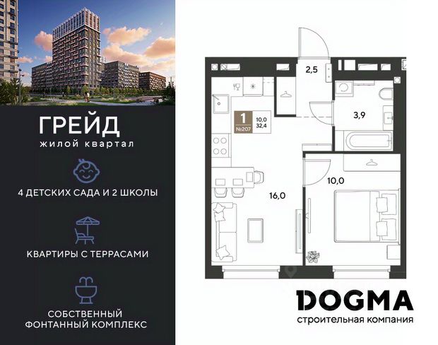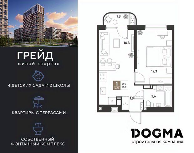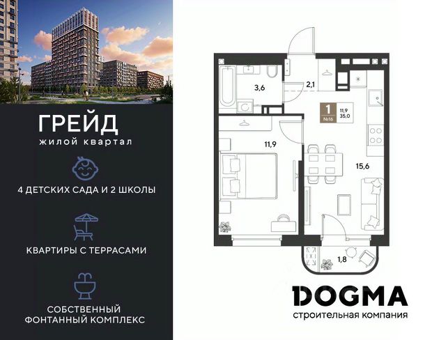 В продаже 1-к квартира от застройщика! ЖК ГРЕЙД г. Краснодар, Литер 15. Срок сдачи: 3 кв. 2028, общей площадью 35.8 кв.м., на 8 этаже. ГРЕЙД от DOGMA: квартал бизнес-класса. Никогда неоклассика не была представлена в краснодарской архитектуре с таким характером. Пока не появился ГРЕЙД, неоклассический квартал, объединяющий строгие формы и величие с прогрессивными технологиями и лаконичностью современного дизайна. Жить в ГРЕЙД — значит чувствовать статус, наслаждаться свободой и управлять своим временем. Квартал с переменной этажностью 9, 16 и 18 этажей предлагает полную инфраструктуру для жизни: 4 детских сада, 2 школы, поликлиника и ФОК расположены в шаговой доступности. Ваши привилегии в ГРЕЙД: - Архитектура в стиле неоклассицизм. - Гранд-лобби с панорамными окнами, мягкой мебелью и выдержанной палитрой. - Закрытый клуб с консьерж-сервисом: - Детский клуб; - Кинотеатр на 20 мест; - Фитнес-рум. - Благоустройство: Парк с фонтаном и амфитеатром, эко-площадки, зоны отдыха, спортивные площадки. - Коммерция на первых этажах с площадками для бизнеса. - Технологии "Умный дом": - Управление через смартфон; - Бесключевой доступ; - Круглосуточное видеонаблюдение; - Интеллектуальные счетчики. - Многоуровневый подземный паркинг с видеонаблюдением, прямым доступом на скоростном лифте и электрозарядками. - Дополнительные удобства: колясочные, велобоксы, кладовые помещения, скоростные лифты. Приобрести квартиру можно одним из способов: - Семейная ипотека. - Рассрочка. - Оплата наличными. - Дистанционная покупка. Позвоните сейчас и узнайте больше о возможностях приобретения квартиры бизнес-класса в ЖК ГРЕЙД!