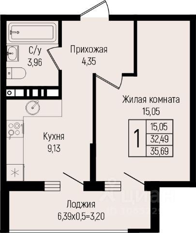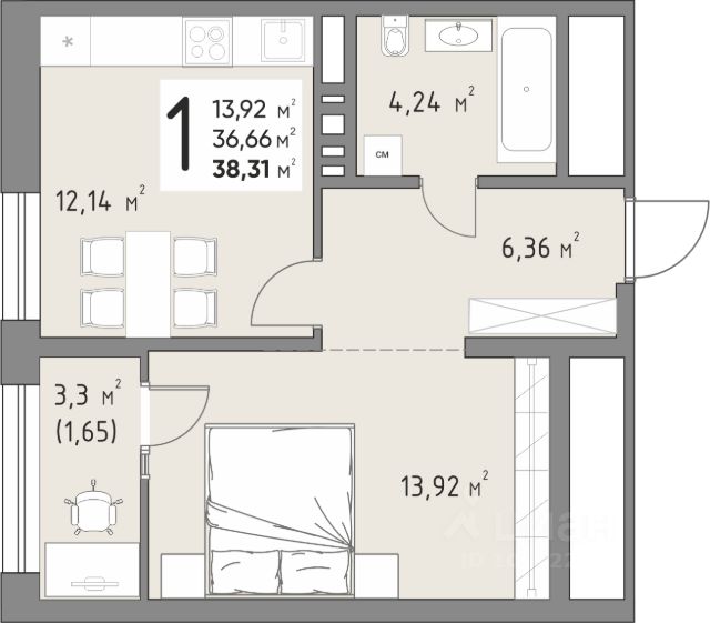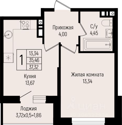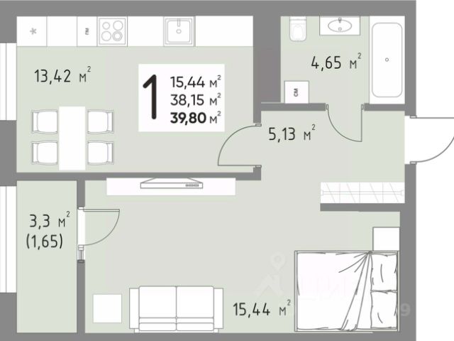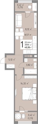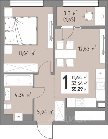 Продается 1-комнатная квартира площадью 33,74 кв.м. на 3 этаже в новом современном клубном квартале от строительной компании "КОНТИНЕНТ ГРУПП".