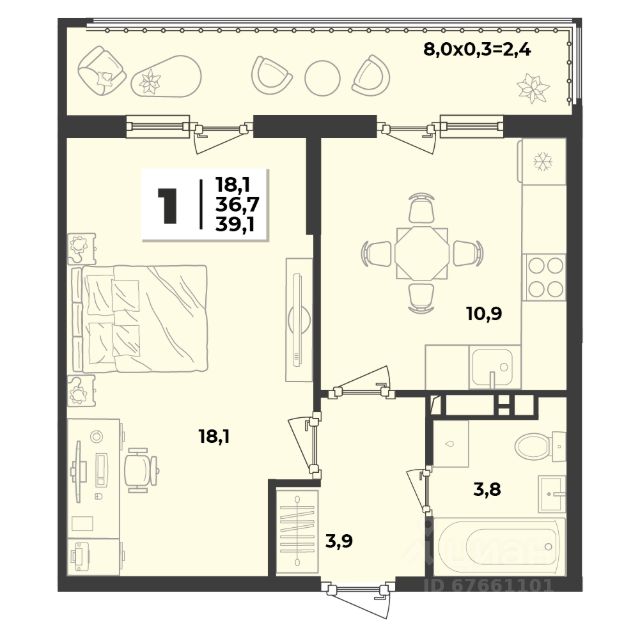 Продаётся 1-комнатная квартира в сданном доме (Литер 1.1), срок сдачи: IV-кв. 2024, общей площадью 38.7 кв.м., на 2 этаже. Новый жилой комплекс "Лето" от застройщика "ГК Дарстрой" расположен по адресу город Краснодар, улица Западный Обход.