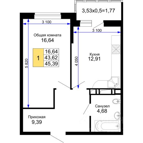 Цена с лоджией (36,1 кв.м.)- 119 000 р./кв.м.