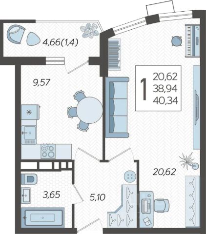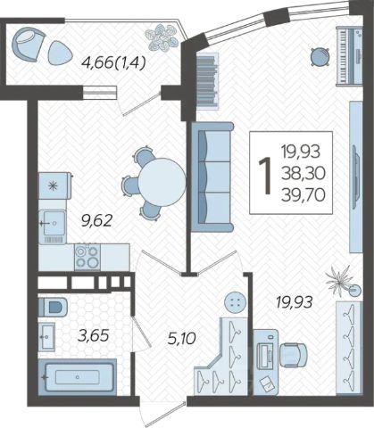 Квартира на 18-ом этаже с панорамным остеклением, обеспечивающим большое количество света и захватывающий вид на центр города. Выход на лоджию из кухни и комнаты. В комнате площадью 17,6м2 есть возможность отделить спальную зону, создав дополнительный комфорт. Высота потолка 2,84м. визуально увеличит пространство, создав дополнительный объем.