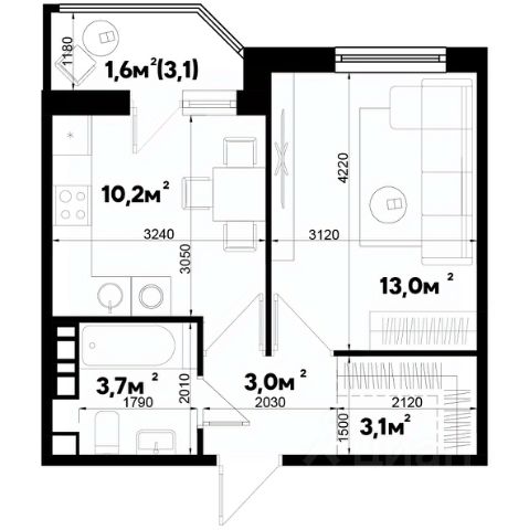 Продаётся 1-комнатная квартира в сданном доме (Литер 2.7), срок сдачи: IV-кв. 2024, общей площадью 32.7 кв.м., на 6 этаже. Расположение, транспортная доступность