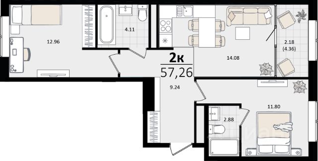 • ✓ В базе Циан 20,9 тыс. 2-комнатных квартир до 18 млн. рублей в Краснодаре