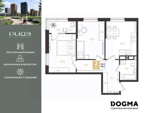 • ✅ Минимальная площадь: 36,9 м²
