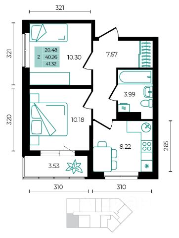 Квартира продается с мебелью: шкаф в прихожей и большой шкаф в комнате, двухъярусная кровать, письменный стол, кухонный гарнитур с техникой.
