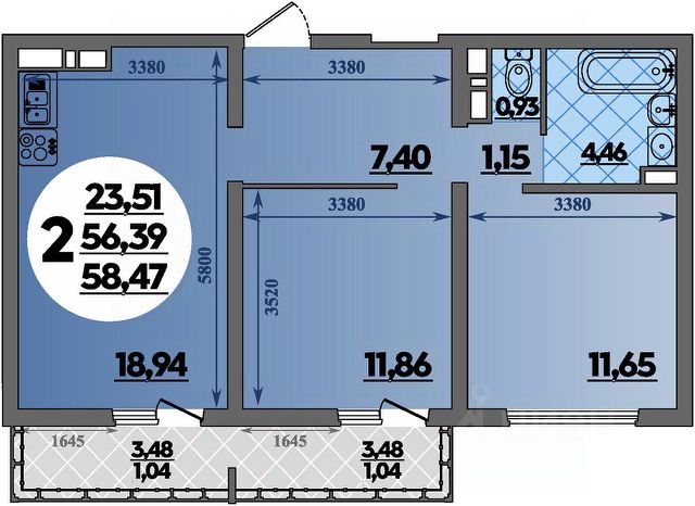 Продаётся 2-комнатная квартира в строящемся доме (Литер 8), срок сдачи: IV-кв. 2026, общей площадью 58.47 кв.м., на 2 этаже.