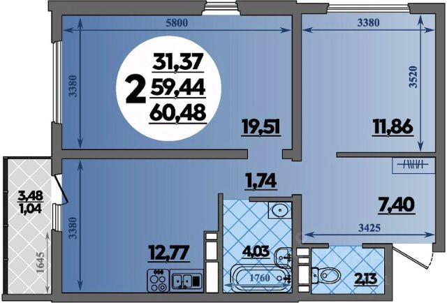 • Санузел под ключ: ванна с декоративным экраном, удобная раковина с пьедесталом, смесители, полотенцесушитель. На полу керамогранит.