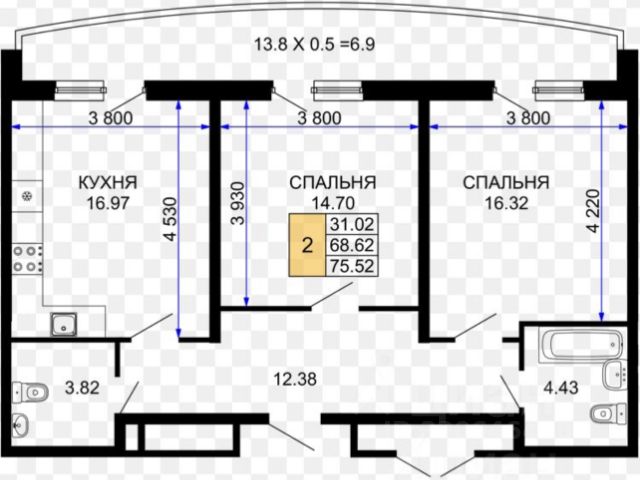 В квартире остается встроенный шкаф. Все коммуникационные кабели спрятаны под натяжными потолками. Выведены розетки под кабельное тв и кабель для роутера. В большой комнате проложена магистраль под сплит систему. Балкон большой, утеплен и застеклен качественными стеклопакетами. Окна выходят во двор, не на проезжую часть. Квартира находится на тринадцатом этаже, не угловая, и лифт в другой стороне. На полу линолеум, на стенах обои. В ванной плитка, качественная сантехника. Очень теплая-реальная экономия на теплоэнергии. Установлены новые счетчики.