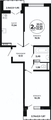 Продаётся 2-комнатная квартира в сданном доме (Литер 5), срок сдачи: IV-кв. 2023, общей площадью 58.9 кв.м., на 1 этаже. Расположение, транспортная доступность