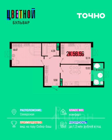 Жилой комплекс "Цветной бульвар" — это уютные дома высотой от 5 до 8 этажей, где каждый найдет квартиру своей мечты: от стильных студий до роскошных двухуровневых квартир с потрясающим видом на гору Собер-Баш! Представьте себе жизнь среди живописной природы, наслаждаясь прогулками по широкому зеленому бульвару длиной 460 метров, окруженному красивыми зелеными насаждениями и зонами для занятий спортом и отдыха всей семьей. Для детей современный детский сад и школа, где специально созданный музей и уникальная STEAM-лаборатория откроют перед ними удивительный мир науки и творчества!