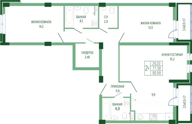 Номер объекта: #1/540278/21862 Купить 2-комнатную квартиру элитные в Краснодаре.