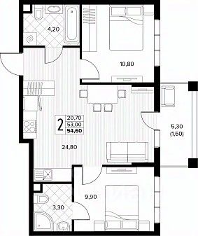 Продаётся 2-комнатная квартира в строящемся доме (Литер 4), срок сдачи: IV-кв. 2026, общей площадью 53.81 кв.м., на 1 этаже. Новый жилой комплекс по ул. Николая Лебедева от застройщика "ССК"