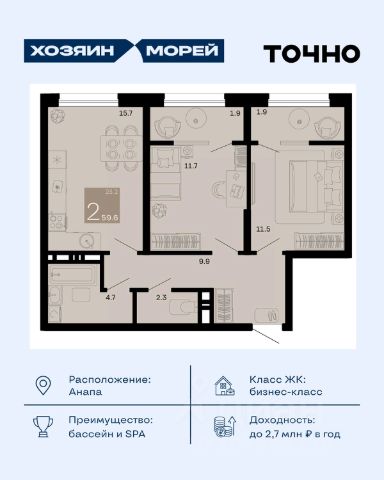 Жилой комплекс включает в себя корпуса высотой от 8 до 12 этажей. Дома возведены по качественной монолитной технологии строительства, с использованием комбинированных фасадов. В здании выполнена дизайнерская отделка входных групп и установлены современные скоростные лифты. В проекте предложено множество планировочных решений классического типа: от уютных студий до просторных 3-ех комнатных квартир. Сдаются они с подчистовой отделкой, панорамными окнами и высотой потолков 2,7 метра. Территория комплекса благоустроена и озеленена. Во дворе спроектированы безопасные детские и спортивные площадки с тренажерами и многофункциональными воркаут-комплексами, предусмотрены зоны отдыха и барбекю, а также зона для выгула собак. На территории комплекса возведена школа и 2 детских сада. Для владельцев автомобилей предусмотрен подземный паркинг. Жилой комплекс расположен в развитом районе города, где есть вся необходимая инфраструктура. Недалеко от комплекса располагаются торговые центры, аптеки, пункты выдачи заказов, школы, детские сады, а также поликлиники. До центра Анапы можно добраться за 10 минут транспортом.