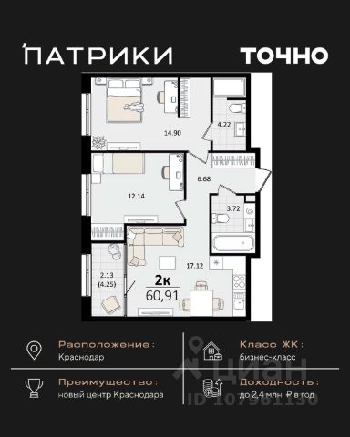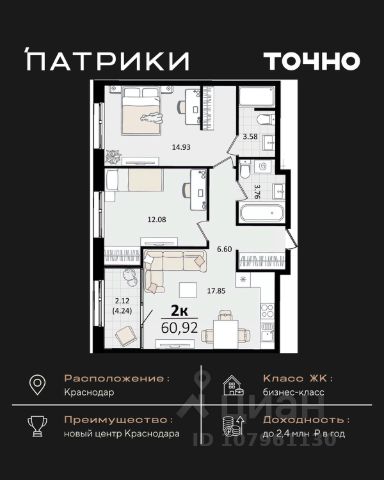 Шикарная 2 комнатная квартира в новом ЖК комфорт-класса!