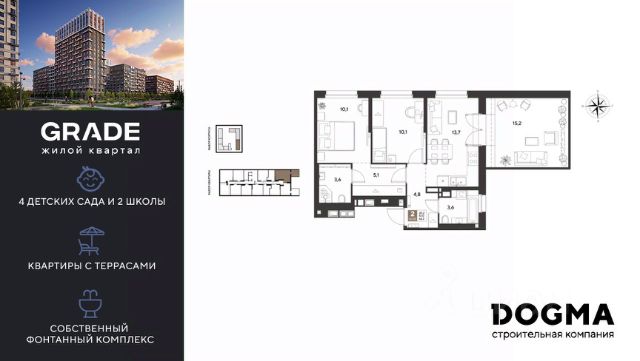 В продаже 2-комнатная квартира от застройщика! ЖК GRADE г. Краснодар, Литер 15 Срок сдачи: 4 кв. 2028, общей площадью 66.2 кв.м., на 10 этаже. GRADE от DOGMA: квартал бизнес-класса. Никогда неоклассика не была представлена в краснодарской архитектуре с таким характером. Пока не появился GRADE, неоклассический квартал, объединяющий строгие формы и величие с прогрессивными технологиями и лаконичностью современного дизайна. Жить в GRADE — значит чувствовать статус, наслаждаться свободой и управлять своим временем. Квартал с переменной этажностью 9, 16 и 18 этажей предлагает полную инфраструктуру для жизни: 4 детских сада, 2 школы, поликлиника и ФОК расположены в шаговой доступности. Ваши привилегии в GRADE: Архитектура в стиле неоклассицизм. Гранд-лобби с панорамными окнами, мягкой мебелью и выдержанной палитрой. Закрытый клуб с консьерж-сервисом: Детский клуб; Кинотеатр на 20 мест; Фитнес-рум. Благоустройство: Парк с фонтаном и амфитеатром, эко-площадки, зоны отдыха, спортивные площадки. Коммерция на первых этажах с площадками для бизнеса. Технологии "Умный дом": Управление через смартфон; Бесключевой доступ по BLE-технологии; Круглосуточное видеонаблюдение; Бесшовный Wi-Fi по всей территории; Интеллектуальные счетчики. Многоуровневый подземный паркинг с видеонаблюдением, прямым доступом на скоростном лифте и электрозарядками. Дополнительные удобства: Колясочные, велобоксы, кладовые помещения, скоростные лифты. Приобрести квартиру можно одним из способов: Семейная ипотека. Рассрочка. Оплата наличными. Дистанционная покупка. Позвоните сейчас и узнайте больше о возможностях приобретения квартиры бизнес-класса в ЖК GRADE!
