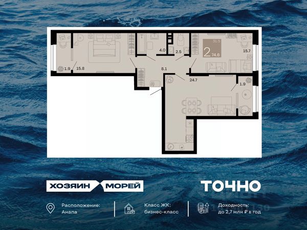 Откройте для себя мир комфорта и роскоши в жилом комплексе бизнес-класса "Хозяин морей". 9 домов от 8 до 12 этажей окружены благоустроенной территорией с прогулочными дорожками, бассейнами, детскими площадками, пространством для спорта и отдыха, двумя садиками и просторной школой. Здесь представлены разнообразные планировки: от комфортабельных студий площадью 33 кв.м до просторных семейных квартир с уникальными видами на бескрайнее море — идеальная комбинация уюта и статуса!