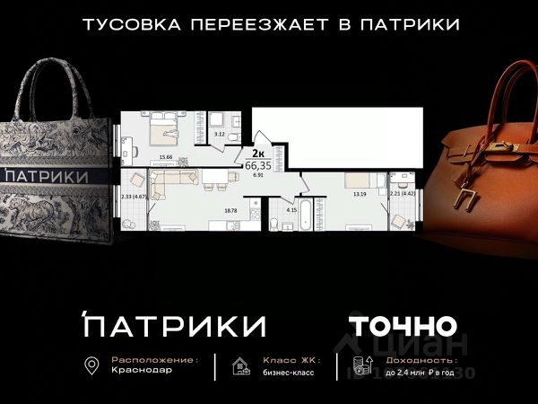 Продаётся 2-комнатная квартира в строящемся доме (Литер 1.5), срок сдачи: II-кв. 2026, общей площадью 36.15 кв.м., на 11 этаже. Флагманский проект группы компаний Точно - жилой комплекс бизнес-класса Патрики, это 10 домов разной этажности расположившихся на 28,5 гектарах. Жилой комплекс с концепцией город в город - прогулочные аллеи, парковая территория, 3 детских сада, 2 школы - одна из которых частная, Гранд аллея с ресторанами, фонтанами и модными бутиками, уникальные мафы и ландшафтный дизайн, создают особую атмосферу - место в котором хочется находиться. В Патриках предусмотрен и креативный кластер Цех, который включает в себя пространство для коворкинга, фудкорт, бутики, детский комплекс, лектории, фитнес-клуб Баланс с волной для сёрфа. Но и это еще не все ГК Точно уважает историю, поэтому мы сохранили 2 башни - наследство от завода "Сельмаш" исторический арт-объект назвали Мастер и Маргарита.