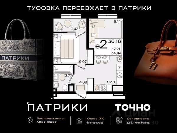 Продаётся 2-комнатная квартира в строящемся доме (Литер 1.5), срок сдачи: II-кв. 2026, общей площадью 36.15 кв.м., на 11 этаже. Флагманский проект группы компаний Точно - жилой комплекс бизнес-класса Патрики, это 10 домов разной этажности расположившихся на 28,5 гектарах. Жилой комплекс с концепцией город в город - прогулочные аллеи, парковая территория, 3 детских сада, 2 школы - одна из которых частная, Гранд аллея с ресторанами, фонтанами и модными бутиками, уникальные мафы и ландшафтный дизайн, создают особую атмосферу - место в котором хочется находиться. В Патриках предусмотрен и креативный кластер Цех, который включает в себя пространство для коворкинга, фудкорт, бутики, детский комплекс, лектории, фитнес-клуб Баланс с волной для сёрфа. Но и это еще не все ГК Точно уважает историю, поэтому мы сохранили 2 башни - наследство от завода "Сельмаш" исторический арт-объект назвали Мастер и Маргарита.
