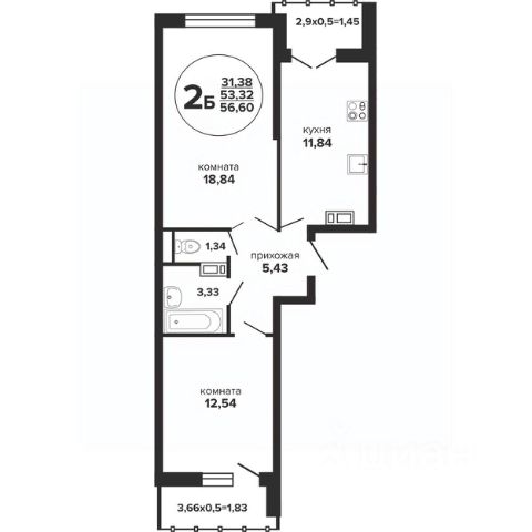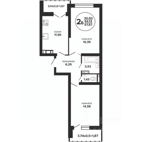 Продаётся 2-комнатная квартира в сданном доме (Литер 4), срок сдачи: III-кв. 2022, общей площадью 55.66 кв.м., на 11 этаже. Расположение, транспортная доступность