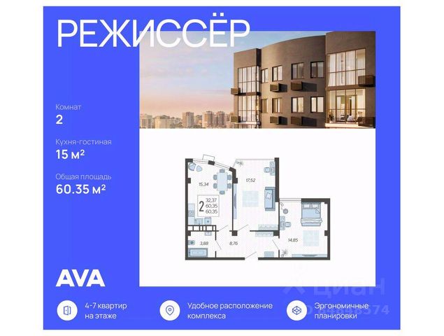 Продаются 2-комнатные апартаменты в ЖК "Режиссёр" в доме (Литер 4), срок сдачи: 2 кв. 2026, общей площадью 60.35 кв.м., на 12 этаже. Без отделки, но с возможностью заказать ремонт. Преимущества квартиры: большая кухня, лоджия. Жилой комплекс расположен на пересечении улиц Уральская и Старокубанская рядом с крупными торгово - развлекательными и деловыми центрами. Развитая инфраструктура, удобная транспортная доступность делают этот район удобным для жизни и работы. Окружение ЖК "Режиссер" уникально для шопинга. ТРЦ центр СБС, Галактика, Ашан, Леруа Мерлен и многие другие в шаговой доступности. Добавит возможности для покупок без ограничений собственная коммерческая инфраструктура. От 4-х до 7 квартир на этаже. Одно из важных преимуществ при выборе квартиры - не много соседей рядом.Лифт, который спускается в подземный паркинг и больше количество парковочных мест сделает жизнь в ЖК Режиссёр еще комфортнее! Традиционно благоустройству территории уделено максимальное внимание. Озеленение взрослыми деревьями разных пород, площадки для взрослых и детей станут местом притяжения для всех жителей ЖК "Режиссер". Рядом находится вся необходимая инфраструктура: 5 минут на машине - школа 14 8 минут на машине - детский сад 167 7 минут на машине - поликлиника 15 В шаговой доступности ТЦ Галактика, ТЦ Галактика, Гипермаркет Окей