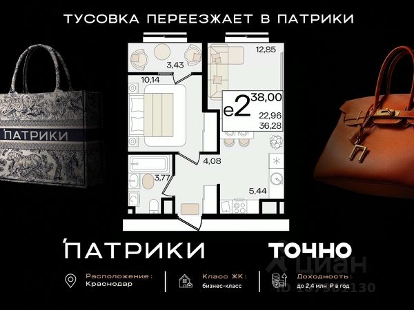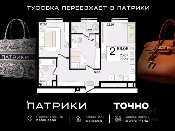 В продаже 2-комнатный апартамент 60.35 кв. м, расположенная в 4 корпусе жилого комплекса комфорт-класса "Режиссёр". Комплекс от девелопера AVA находится в развитом районе Краснодара, в 5 минутах пешком от крупного ТРЦ. Транспортная доступность • Остановка трамваев 8, 9, 10, 20 - в шаговой доступности; • 4 торговых центра в 5 минутах ходьбы; • 13 минут до живописного парка "Краснодар"; • 30 минут до аэропорта по Уральской улице; • Удобный выезд к морю через трассу М4. Современная архитектура Облик комплекса "Режиссёр" отражает современный стиль, отличающийся продуманной функциональностью. Устремленные ввысь 2 литера высотой от 14 до 21 этажа гармонируют с природным окружением комплекса - для отделки фасада подобраны лаконичные естественные оттенки. Балконы и лоджии панорамного типа с энергосберегающими стеклами не пропускают вредные УФ-лучи. Наслаждайтесь вдохновляющими видами на город без границ! Дизайнерские холлы Уют с первого шага: вас встретят входные группы с индивидуальным дизайном и комфортной мягкой мебелью для отдыха или ожидания такси. 2 скоростных лифта установлены в каждом подъезде и обеспечивают комфортное и быстрое перемещение по этажам. Кроме того, входные группы имеют безбарьерный доступ, что обеспечит удобство и безопасность для всех жителей. Двор и благоустройство Жилой комплекс "Режиссёр" отличается качественным многофункциональным зонированием двора, где каждый элемент благоустройства гармонично дополняет друг друга. Внутри комплекса находится две больших зелёных территории с детскими и спортивными площадками, фотозонами для красивых фотографий и протяженным прогулочным маршрутом. Большинство зон активности расположены на стилобате, что делает двор безопасным и уютным местом для отдыха. Преимущества • Трехуровневый подземный паркинг на 852 машино-места; • Всего 4 - 7 квартир на этаже; • Магазины, кафе и супермаркеты на первых этажах домов; • Школа, детский сад, поликлиника и парк в 5 - 10 минутах на машине.