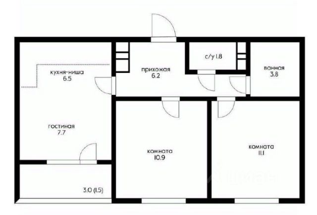 Квартира правильной удобной формы с мечтой каждой хозяйки кухней-гостинной 16 м2 и раздельным санузлом, что важно многим для комфорта, двумя спальнями 10,1 м2 + спальня 10,9 м2 + балкон 3,2 м2, коридор 7,3 м2, санузел раздельный 3,1 м2 + 1,5 м2, итого (48,2 +3,3 =51,5 м2), в хорошей предчистовой отделке (стяжка, штукатурка), розетки, счетчик УЗО, радиаторы, горизонтальная тепловая разводка по полу под стяжкой.