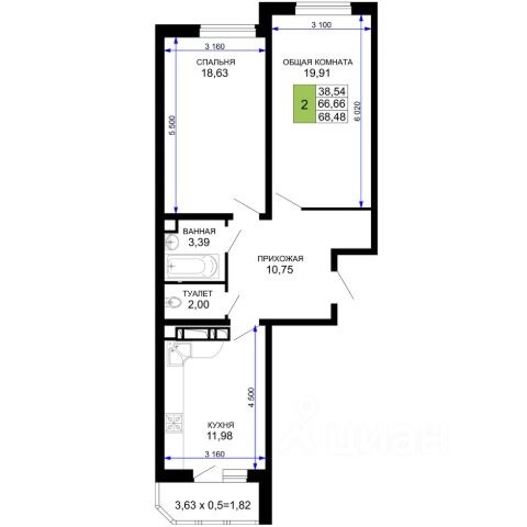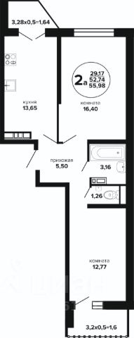Продаётся 2-комнатная квартира в сданном доме (Литер 4), срок сдачи: III-кв. 2022, общей площадью 55.15 кв.м., на 12 этаже. Расположение, транспортная доступность