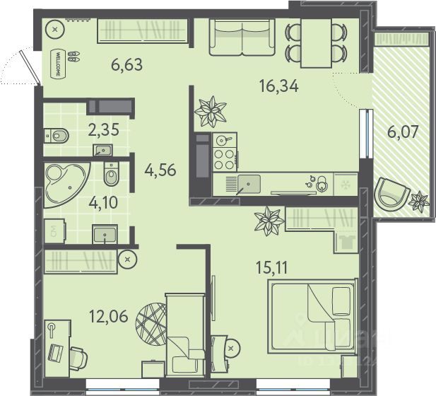 Продаются 2-комнатные апартаменты в ЖК "Режиссёр" в доме (Литер 4), срок сдачи: 2 кв. 2026, общей площадью 69.95 кв.м., на 12 этаже. Без отделки, но с возможностью заказать ремонт. Преимущества квартиры: . Жилой комплекс расположен на пересечении улиц Уральская и Старокубанская рядом с крупными торгово - развлекательными и деловыми центрами. Развитая инфраструктура, удобная транспортная доступность делают этот район удобным для жизни и работы. Окружение ЖК "Режиссер" уникально для шопинга. ТРЦ центр СБС, Галактика, Ашан, Леруа Мерлен и многие другие в шаговой доступности. Добавит возможности для покупок без ограничений собственная коммерческая инфраструктура. От 4-х до 7 квартир на этаже. Одно из важных преимуществ при выборе квартиры - не много соседей рядом.Лифт, который спускается в подземный паркинг и больше количество парковочных мест сделает жизнь в ЖК Режиссёр еще комфортнее! Традиционно благоустройству территории уделено максимальное внимание. Озеленение взрослыми деревьями разных пород, площадки для взрослых и детей станут местом притяжения для всех жителей ЖК "Режиссер". Рядом находится вся необходимая инфраструктура: 5 минут на машине - школа 14 8 минут на машине - детский сад 167 7 минут на машине - поликлиника 15 В шаговой доступности ТЦ Галактика, ТЦ Галактика, Гипермаркет Окей