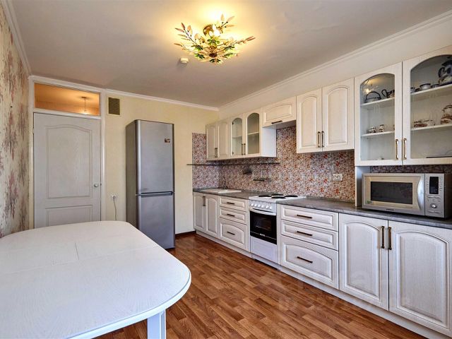 Электрику делали с усиленными кабелями и множеством розеток (особенно на кухне), обои моющиеся во всей квартире, ламинат.