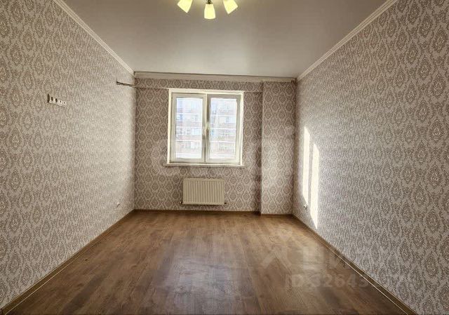 На полу положен влагостойкий ламинат класс 32, обои, вывод под кондиционер. Высота до натяжных потолков 2, 65 м.