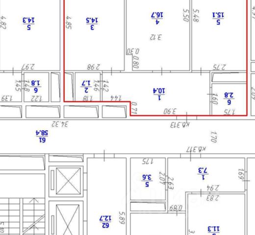 Площадь по выписке 61,7, вместе с двумя балконами 67,7.