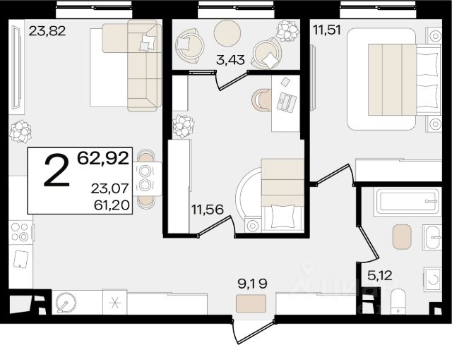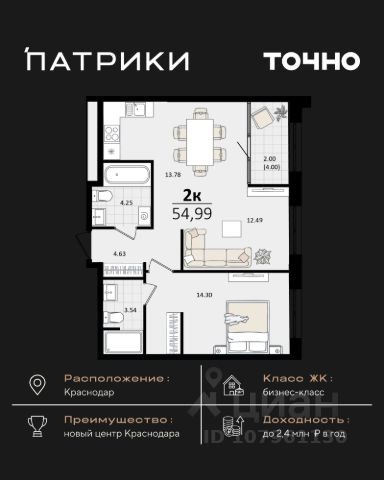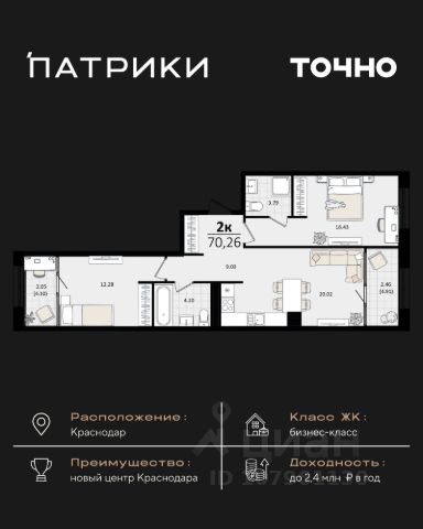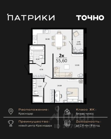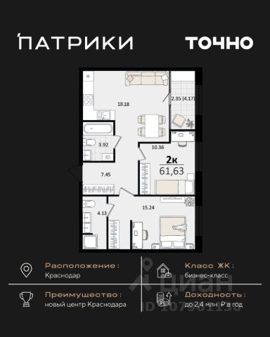 Продаётся 2-комнатная квартира в строящемся доме (Дом 100/6), срок сдачи: I-кв. 2026, общей площадью 83.27 кв.м., на 14 этаже. Новый жилой комплекс "Альфа" от застройщика "Телекомстрой" расположен по адресу город Краснодар, Уральская улица.