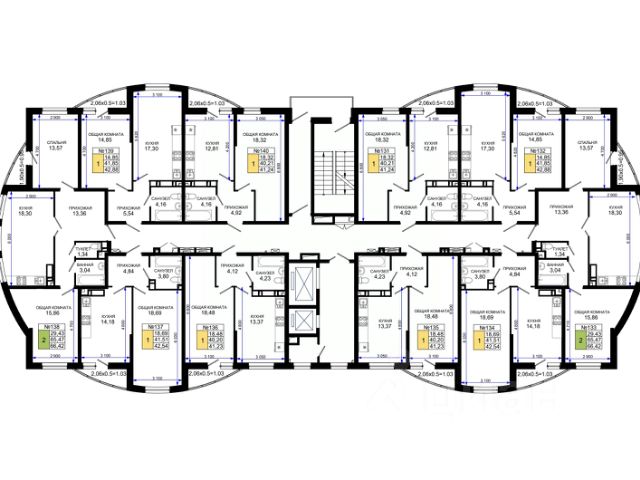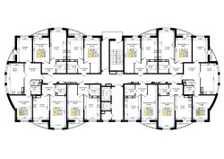 Жилая (спальная) комната 21,7 м2 с панорамным окном , вторая ( детская) 23,0 м2.Совмещенный санузел 4,5 м2, Прихожая 14,6 м2.