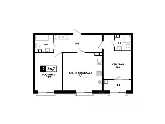 — Продуманная 2-комнатная планировка с возможностью комфортного зонирования;
