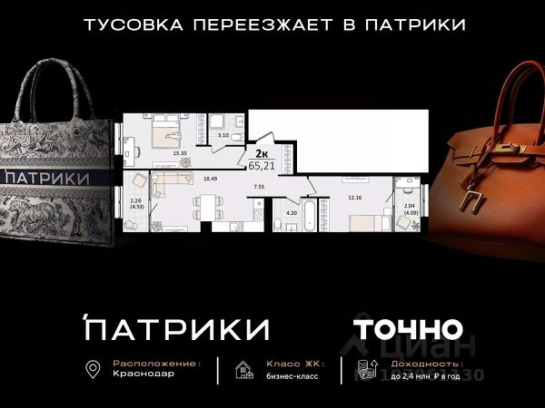 Продаётся 2-комнатная квартира в строящемся доме (Литер 1.1), срок сдачи: I-кв. 2026, общей площадью 63.06 кв.м., на 15 этаже. Флагманский проект группы компаний Точно - жилой комплекс бизнес-класса Патрики, это 10 домов разной этажности расположившихся на 28,5 гектарах. Жилой комплекс с концепцией город в город - прогулочные аллеи, парковая территория, 3 детских сада, 2 школы - одна из которых частная, Гранд аллея с ресторанами, фонтанами и модными бутиками, уникальные мафы и ландшафтный дизайн, создают особую атмосферу - место в котором хочется находиться. В Патриках предусмотрен и креативный кластер Цех, который включает в себя пространство для коворкинга, фудкорт, бутики, детский комплекс, лектории, фитнес-клуб Баланс с волной для сёрфа. Но и это еще не все ГК Точно уважает историю, поэтому мы сохранили 2 башни - наследство от завода "Сельмаш" исторический арт-объект назвали Мастер и Маргарита.