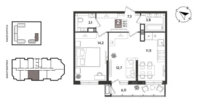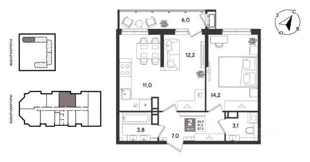 Продается двухкомнатная квартира-бабочка квартира с комнатами на 2 стороныиз спальни вид на озероиз спальни и кухни вид во дворраздельный санузелв коридоре есть место для шкафовесть возможность объединения комнаты и кухни2 балкона В подъезде 4 квартиры на этаже, 2 скоростных лифта компании OTIS, подземный паркинг Квартира продается напрямую от застройщика наличный расчетипотека ведущих банков ДОМ УЖЕ СДАН! Бонусом обжитой районразвитая инфраструктура: 3 детских сада, 2 школы, поликлиникаозеро и 2 сквераотличная транспортная доступность Все вы сможете своими глазами, если приедете на экскурсию. Ждем вас на Селезнева, 104/1