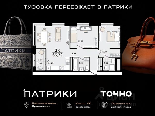 Флагманский проект группы компаний Точно - жилой комплекс бизнес-класса Патрики, это 10 домов разной этажности расположившихся на 28,5 гектарах. Жилой комплекс с концепцией город в город - прогулочные аллеи, парковая территория, 3 детских сада, 2 школы - одна из которых частная, Гранд аллея с ресторанами, фонтанами и модными бутиками, уникальные мафы и ландшафтный дизайн, создают особую атмосферу - место в котором хочется находиться. В Патриках предусмотрен и креативный кластер Цех, который включает в себя пространство для коворкинга, фудкорт, бутики, детский комплекс, лектории, фитнес-клуб Баланс с волной для сёрфа. Но и это еще не все ГК Точно уважает историю, поэтому мы сохранили 2 башни - наследство от завода "Сельмаш" исторический арт-объект назвали Мастер и Маргарита.