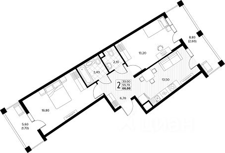 Только через "Самолет Плюс", по программе "Ипотека от партнеров" можете купить эту квартиру под ставку от 14,75% *