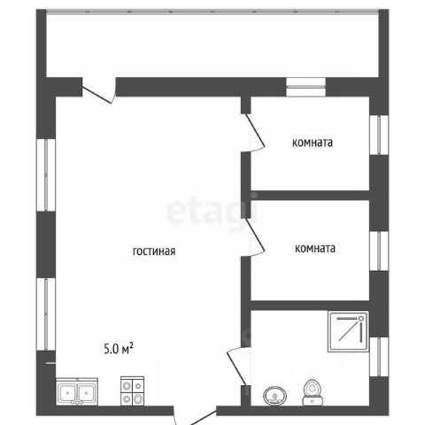 Общая площадь 45 м2 - огромная кухня, просторная прихожая.