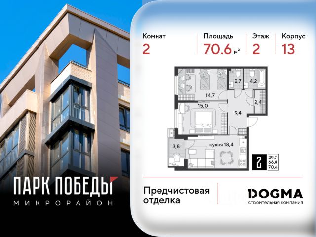 В продаже 2-комнатная квартира от застройщика! ЖК "Парк Победы 2", г. Краснодар, Литер 40 Срок сдачи: 3 кв. 2026, общей площадью 63.1 кв.м., на 2 этаже. Концептуально новый микрорайон "ПАРК ПОБЕДЫ" - это статная архитектура, вдохновленная наследием страны. Уникальное культурное пространство в стиле сталинского ампира, который отличает монументальность, классические пропорции и четкость линий. •Безбарьерная среда •Сквозные подъезды •Авторские лобби •Видовые квартиры с панорамным остеклением •Квартиры с мастер-спальнями и отдельными гардеробными •Потолки 3 метра •Улучшенная отделка от застройщика •Подземный паркинг и кладовые •Дворы без машин с видеонаблюдением •Круглосуточный пост охраны •Школа для 1 550 учеников •4 детских сада •Уличные тренажёры, зоны для пинг-понга и йоги •Крытый боксёрский ринг •Собственный пешеходный бульвар •Прогулочные аллеи с фонтаном •Коммерческие помещения на первых этажах Приобрести квартиру можно одним из способов: -субсидированная семейная ипотека 4,5 % на весь срок -рассрочка до конца строительства -оплата наличными -дистанционная покупка Позвоните сейчас и забронируйте квартиру со скидкой!