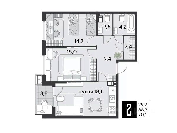 В продаже 2-комнатная квартира от застройщика! ЖК "Парк Победы 2", г. Краснодар, Литер 4 Срок сдачи: 2 кв. 2026, общей площадью 59.3 кв.м., на 4 этаже. Концептуально новый микрорайон "ПАРК ПОБЕДЫ" - это статная архитектура, вдохновленная наследием страны. Уникальное культурное пространство в стиле сталинского ампира, который отличает монументальность, классические пропорции и четкость линий. •Безбарьерная среда •Сквозные подъезды •Авторские лобби •Видовые квартиры с панорамным остеклением •Квартиры с мастер-спальнями и отдельными гардеробными •Потолки 3 метра •Улучшенная отделка от застройщика •Подземный паркинг и кладовые •Дворы без машин с видеонаблюдением •Круглосуточный пост охраны •Школа для 1 550 учеников •4 детских сада •Уличные тренажёры, зоны для пинг-понга и йоги •Крытый боксёрский ринг •Собственный пешеходный бульвар •Прогулочные аллеи с фонтаном •Коммерческие помещения на первых этажах Приобрести квартиру можно одним из способов: -субсидированная семейная ипотека 4,5 % на весь срок -рассрочка до конца строительства -оплата наличными -дистанционная покупка Позвоните сейчас и забронируйте квартиру со скидкой!
