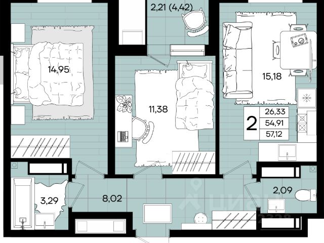 Нажмите + если хотите получить планировку этой квартиры. Звоните в любое удобное для Вас время.
