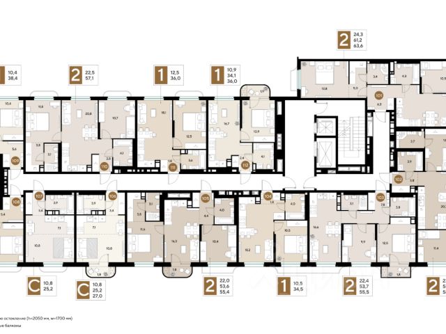 Во всех квартирах остекление из комнат на лоджию полностью в пол, отопительные приборы убраны на стены рядом