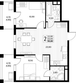 Продаётся 2-комн. квартира от застройщика c отделкой в ЖК "Кипарис" на 6 этаже. Общая площадь:55.6 кв.м., площадь просторной кухни-столовой:20. B квартире один балкон. Высота потолков 2.81 м.
