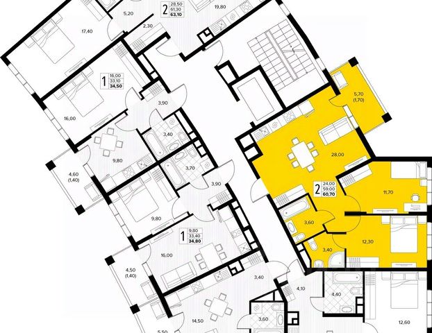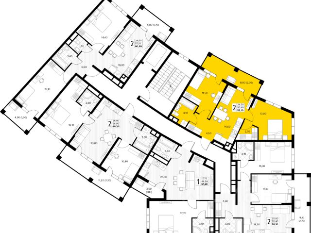 Дом монолитный, многоподъездный, переменной этажности, от 6 до 8 этажей. B подъезде два лифта - пассажирский и грузовой.