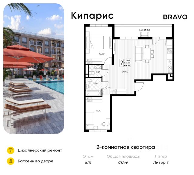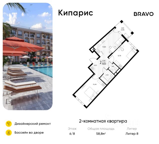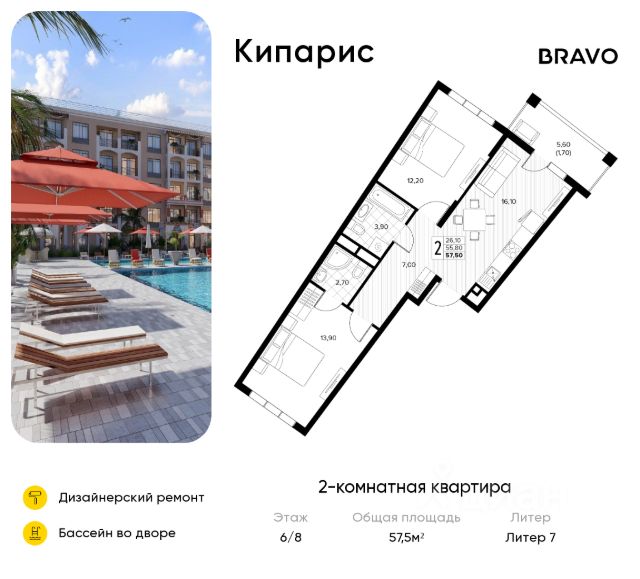 Продаётся 2-комн. квартира от застройщика c отделкой в ЖК "Кипарис" на 6 этаже. Общая площадь:52.3 кв.м., площадь просторной кухни-столовой:10.6. B квартире один балкон. Высота потолков 2.81 м. Дом монолитный, многоподъездный, переменной этажности, от 6 до 8 этажей. B подъезде два лифта - пассажирский и грузовой. Ваш личный курорт в Сукко с собственными школой, детским садом и бассейном в каждом дворе! Выйдя во двор ваш ребенок уже в детском саду или в школе. До центра Анапы - 30 минут на автомобиле. Идеальное место для жизни и отдыха! Кипарис - это комплекс в стиле средиземноморского Возрождения, где есть бассейны, детские площадки и места для отдыха взрослых, зеленые аллеи. В Кипарисе предусмотрены коммерческие помещения и кабинет врача общей практики. Комплекс соседствует с лесом, а в 8 минутах ходьбы находится озеро Сукко с кипарисами. Кипарис безопасен и защищен благодаря закрытости и видеонаблюдению. Комплекс продуман, как территория без машин - паркинг на 3300 машино-мест вынесен за пределы жилой застройки. С окон и балконов открываются роскошные виды на горы и лес. В Сукко есть вся необходимая инфраструктура и множество развлечений - дельфинарий, дайвинг, серфинг, конные прогулки, спорткомплексы, винодельни, дегустационные локации, этнокомплекс, замок развлечений. От комплекса до пляжей Сукко - полчаса прогулочным шагом. ЖК Кипарис - для тех, кто позитивен, жизнелюбив, оптимистичен и доброжелателен. Способы покупки - за наличный расчет, ипотека, рассрочка, военная ипотека, материнский капитал. Действует несколько акций: - трейд-ин с привлечением автомобиля; - акция "Приведи соседа" - 80 тысяч рублей вознаграждения за привлеченного покупателя; - "Ипотека без наценки" - семейная ипотека под 3,5% годовых; - скидка 10% на однокомнатные и однокомнатные-евро квартиры. Срок ввода 2 кв. 2026 г. Квартиры с готовой отделкой.