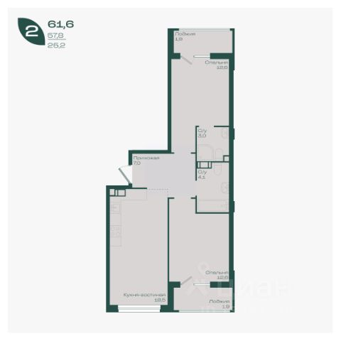 Продаётся 2-комнатная квартира в сданном доме (Литер 2), срок сдачи: I-кв. 2025, общей площадью 61.3 кв.м., на 22 этаже. Новый жилой комплекс "Огурцы" от застройщика "Партнер Инвест Кубань" расположен по адресу Краснодар, посёлок Берёзовый, Целиноградская улица.