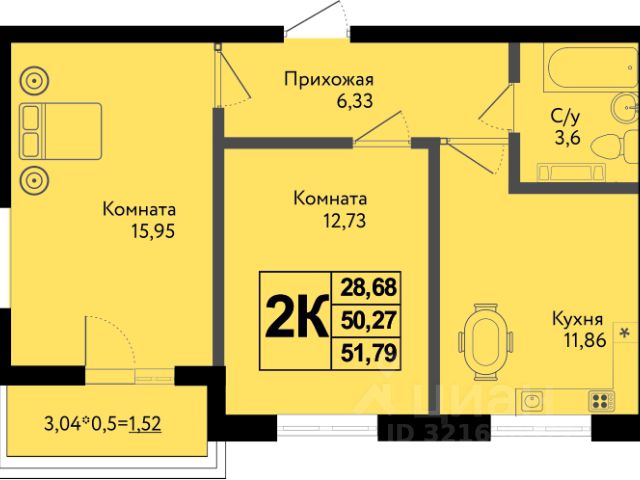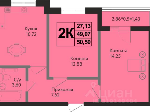— Функциональная планировка: кухня 7 м², жилая площадь 28,2 м². Высота потолков 2,7 м.